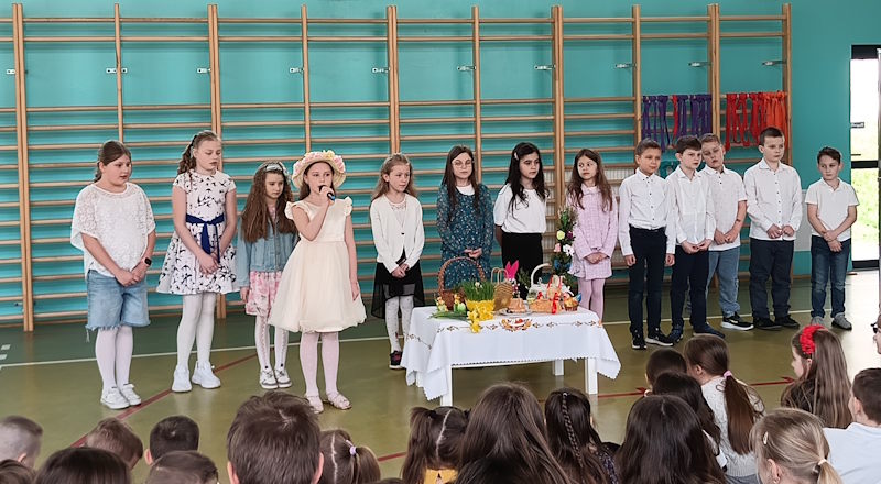 Uczniowie klasy 2 przygotowali radosne przedstawienie poświęcone tematyce wiosny i zbliżających się Świąt Wielkanocnych. Podczas występu zaprezentowali wierszyki i piosenki, które wprowadziły publiczność w pogodny, wiosenny nastrój.