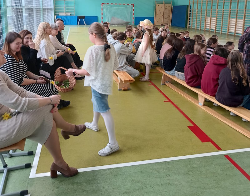 Dzieci obdarowały widzów przygotowanymi kwiatami oraz słodkimi upominkami, co wywołało wiele uśmiechów. Na zakończenie pojawił się także symboliczny śmigus-dyngus, który dodał całemu wydarzeniu humoru i lekkości.